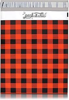 Pack It Chic - 10X13 (100 Pack) Red Buffalo Plaid Poly Mailer Envelope Plastic Custom Mailing & Shipping Bags - Self Seal