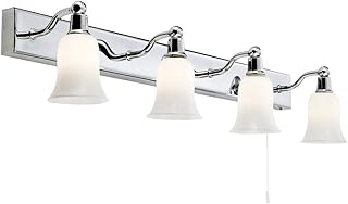 SEARCHLIGHT 2934-4CC - CHROME 4 LIGHT HALOGEN WALL LIGHT BAR WITH WHITE GLASS SHADES