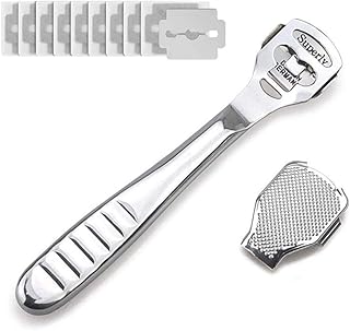 Fußschaber, Premium Edelstahl Hornhauthobel Fußfeile Fußpflege Pediküre abgestorbene harte Haut Entferner Schaber Pediküre Fußpflege Werkzeug mit 10 Klingen