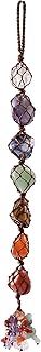 Jovivi Hänger Deko 7 Chakra Trommelsteine Rohstein Geflochten Hänger Ornament Feng Shui Reiki Dekoration Hängedeko Fenster