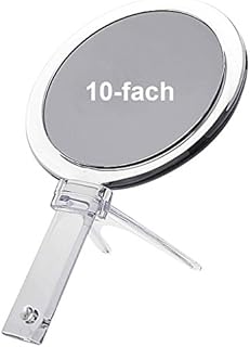 Kosmetex Hand- und Stellspiegel mit 10-fach Vergrößerung, Acryl mit Ständer, 2 Spiegelflächen, Kosmetik-Spiegel, 10-fach