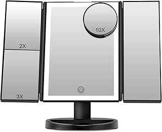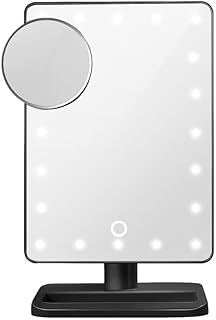 LUCKYKS Schmink Spiegel 20 LED 12 " Bildschirm Touch-screen 10-fache Vergrößerung Lupe LED Beleuchtung Make Up Spiegel Kosmetik Spiegel Standspiegel (schwarz)