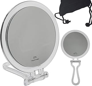 Kosmetex Reise Stand- und Handspiegel mit 10-fach Vergrößerung, Acryl, 2 Spiegelflächen, Kosmetik-Spiegel
