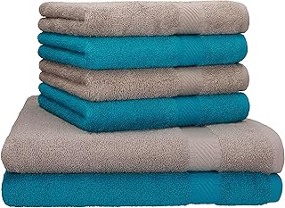 Betz 12-TLG. Handtuch-Set Palermo 100% Baumwolle 2 Liegetücher 4 Handtücher 2 Gästetücher 2 Seiftücher 2 Waschhandschuhe Farbe Petrol und Stone