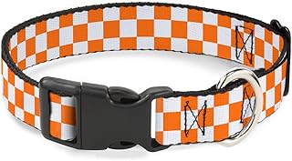 Buckle-Down pc-w30303-l Checker weiß/orange Kunststoff Clip Kragen, großes/38,1–66 cm