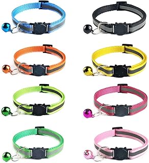 Ymwave 8 Stück Nylon Katzenhalsband Reflektierendes Coole Halsbänder mit Sicherheitsschnalle und Glocke Verstellbar 19–32 cm Coole Halsbänder für Hauskatzen kleine Hunde