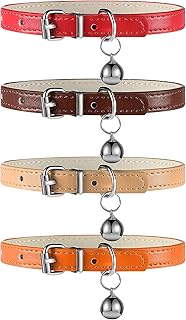 Weewooday 4 Stücke Leder Katzen Halsbänder mit Glocken Weiches und Verstellbares Haltbares Metall Schnallen Kätzchen Halsband für Kleine Hunde Katzen (Braun, Rot, Orange, Beige)