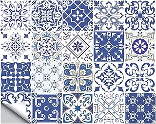Prosperveil 20 Stück Retro-Mosaik-Wandfliesen-Aufkleber, selbstklebend, wasserdicht, für Küche, Badezimmer, Fliesen, Wandaufkleber, Vinyl-Kunst-Aufkleber, Heimdekoration (Meerblau, 15 x 15 cm)