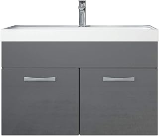 Badezimmer Badmöbel Set Paso 01 80 cm Waschbecken Hochglanz Grau Fronten - Unterschrank Schrank Waschbecken Waschtisch