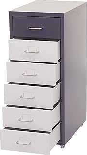 Mendler Rollcontainer Boston T851, Schubladenschrank Stahlschrank, 69x28x41cm 6 Schubladen - dunkelgrau weiß-dunkelgrau