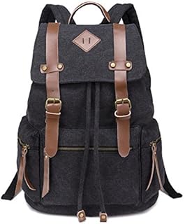 Yimidear Canvas Rucksack, Herren Damen Vintage Rucksäcke Retro Schulrucksack Wanderrucksack Reisetasche (schwarz)