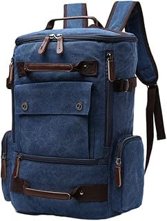 Canvas Leinwand Rucksack Dunkelblau Vintage für Outdoor Camping Außflug Sports Universität Rucksack Wanderrucksack Schultasche Schulrucksack Herren Damen Mädchen Jungen Teenager Rucksäcke
