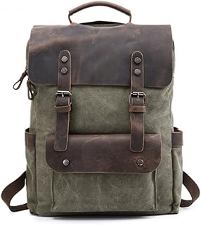 P.KU.VDSL Canvas Rucksack, Vintage Rucksack Schulrucksack Retro Rucksack Daypack Backpack Lederrucksack Wanderrucksack Reisetasche Laptoprucksack für Herren Damen Jungen Mädchen (A - Armygreen)