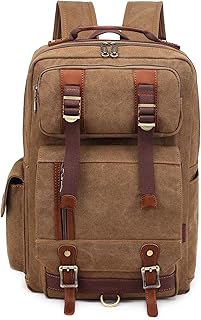Retro Segeltuch Rucksack, Canvas Vintage Rucksack Echtleder Laptop Daypack Schulrucksack Reisetasche Lederrucksack Wasserdicht Dauerhaft Schulterpackung für Herren Damen Coffee