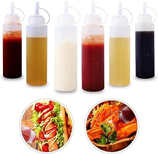 LUKIUP® Squeeze Flasche aus Kunststoff,Quetschflasche,6 Stück 250ml Saucen Spritzflasche,Squeeze Bottle,Liquid-Flaschen mit Auslaufsicher Tip Cap & Messungen,Aufbewahrungsbehälter für Ketchup,Soßen