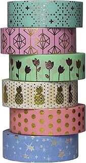 UOOOM 6 Rolls 10m x 15mm Beautiful Farbe und Gold Washi Tape Masking Tape deko Klebeband buntes Klebebänder DIY Scrapbook deko (Design 9061)