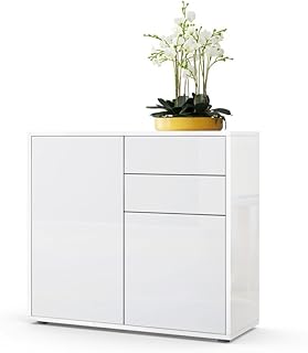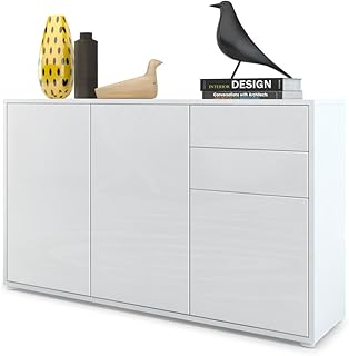Vladon Kommode Sideboard Ben, Korpus in Weiß Hochglanz/Fronten in Weiß Hochglanz