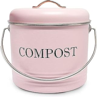 Jolitac Komposteimer mit 8 Bonus-Kohle-Schaumstoff-Pads, Vintage Pink Arbeitsflächen-Recycling-Mülleimer 5 Liter, Komposteimer mit Deckel für den Innenbereich