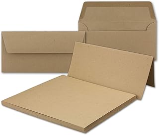 75x Vintage Kraftpapier Falt-Karten Set mit Umschlägen DIN Lang - 100 x 210 mm - braun - Recycling - Klapp-Karten blanko I Umwelt by Gustav NEUSER®