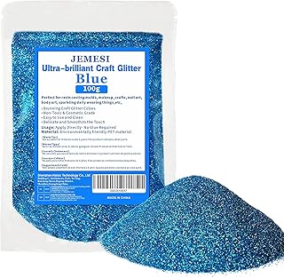 JEMESI Feine Glitzer, Blau Glitzerpulver, Glitzer Pulver Nagel Glitter, Glitzerpulver in Kosmetikqualität für Nagelkunst, Lidschatten,Dekoration, Karten, Körperkunst & Basteln -100g
