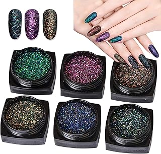 6 Farben Glitzer Set, EBANKU Glitzerpulver Set Nail Glitzerpuder Laser Holographic Nail Powder Nagelkunst Maniküre Kit Nagel Glitter für Nagelkunst, Lidschatten, Gesicht, Basteln, DIY