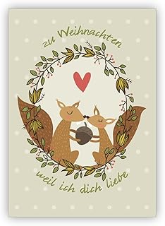 Kartenkaufrausch Eichhorn Liebes Weihnachtskarte mit Umschlag auf graugrün: zu Weihnachten weil ich dich liebe • als hübsche Grußkarte zu Weihnachten, Jahres-Ende für Familie und Firma