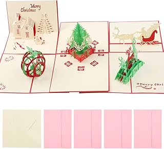 Weihnachtskarten,5 Stück 3D Pop Up Weihnachtsgrußkarten Frohe Weihnachtskarte mit Umschlägen für Weihnachts-Neujahrsgeschenk(roter Umschlag),5 Styles Classic Christmas Exquisite 3D-Grußkarte