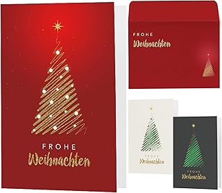 15 moderne Weihnachtskarten mit Umschlägen - Klappkarten mit Sprüchen & Rezepten für Weihnachten - Weihnachtskarte Set für Familie, Freunde oder Kunden (rot-gold)