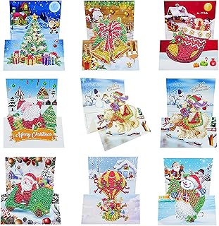 8 Packs DIY Diamant Malerei Weihnachtskarte Runde Bohrer Gruß Dankeskarten Weihnachtsbaum Neujahr Grußkarte Weihnachtsaufkleber DIY Handgemachtes Geschenk für Urlaub Freunde und Familie