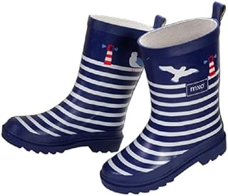 Unisex Kindergummistiefel, Babygummistiefel, Regenstiefel, Navy/weiß, Modell Maritim aus Naturkautschuk