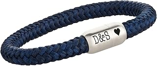 Segler Armband mit Gravur: geflochtenes Herren und Damen Armband mit Initialen oder Buchstaben - nautic/maritim in dunkelblau, silber 19-21 cm, graviert