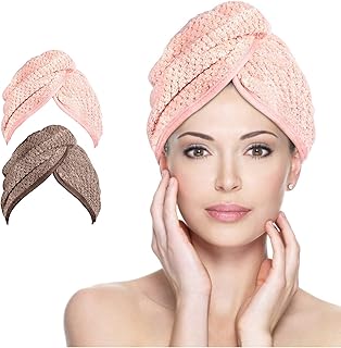 AmzKoi Haarturban, 2 Pcs Microfaser Turban Handtuch Schnelltrocknend saugfähig Haar Handtuch Kopfhandtuch mit Knopf,Haarhandtuch Für Alle Haartypen (Braun & Rosa)