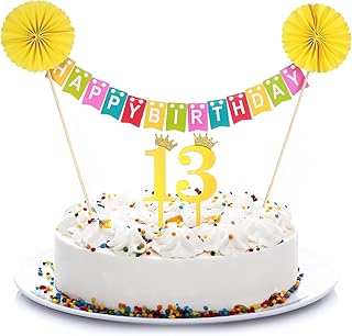 Crazy-M 13. Geburtstag Kuchen Topper Party Tortendeko Geburtstag Set 13 Geburtstag Kuchen Dekoration Bunt Kuchengirlande Happy Birthday Kuchen Wimpelkette 13 Jahre Tortendeko für Mädchen Junge